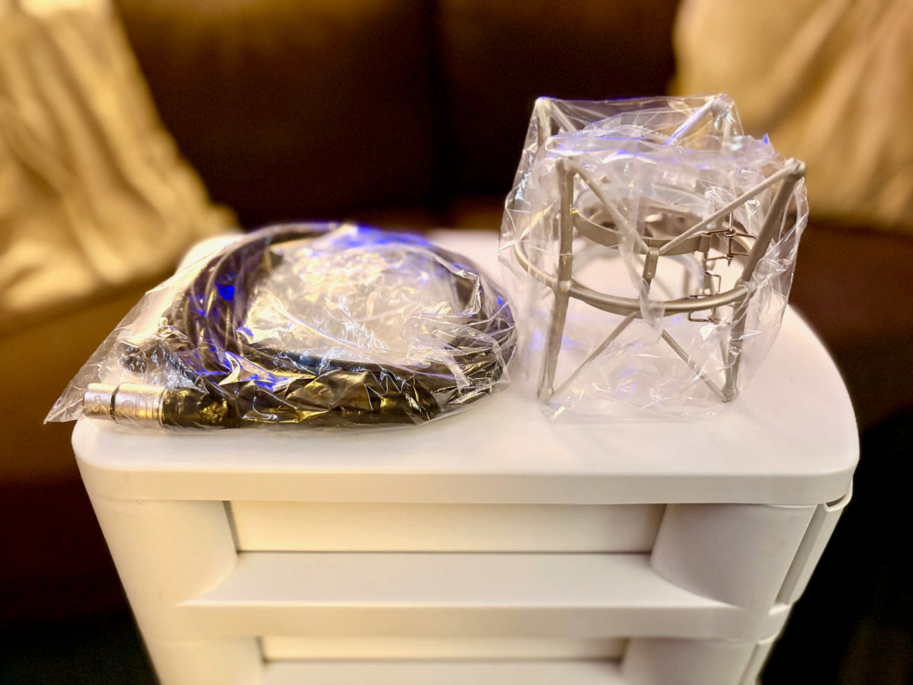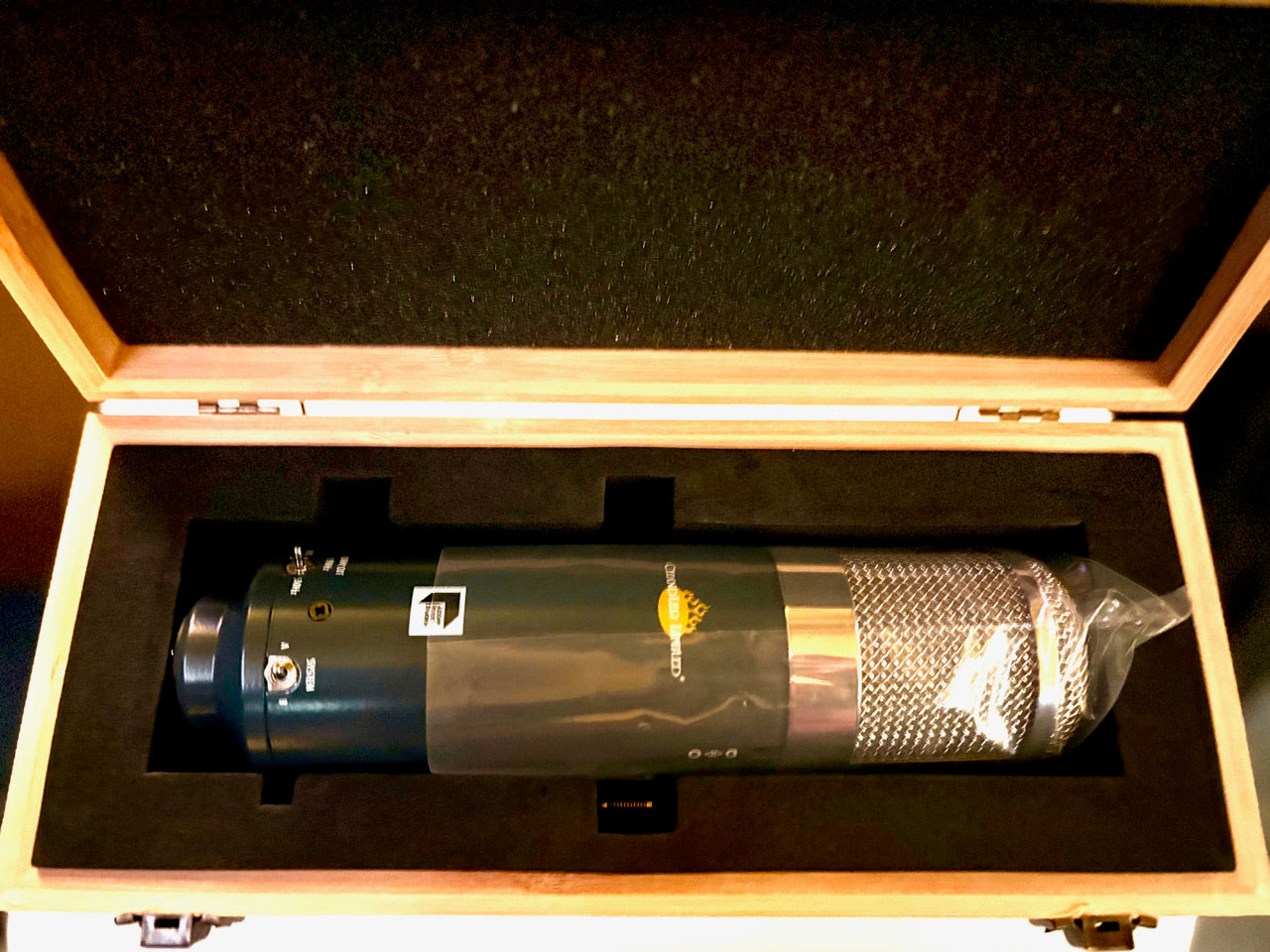 Shockmount, 25’ Mogami 4-pin mic cable, dedicated PSU, and wooden case are included.